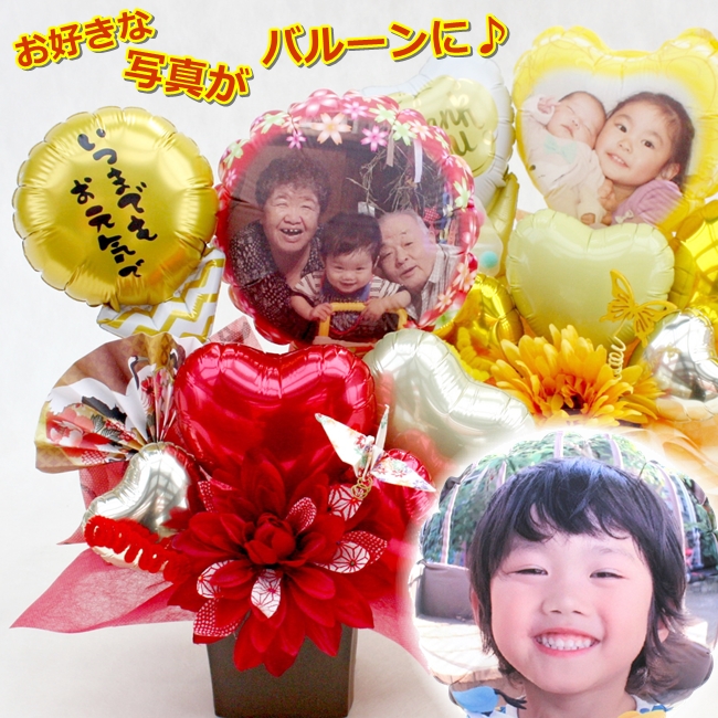 写真付き フォト バルーン フラワー ギフト 写真立て風 和柄 誕生日 結婚式 還暦祝 和風 造花