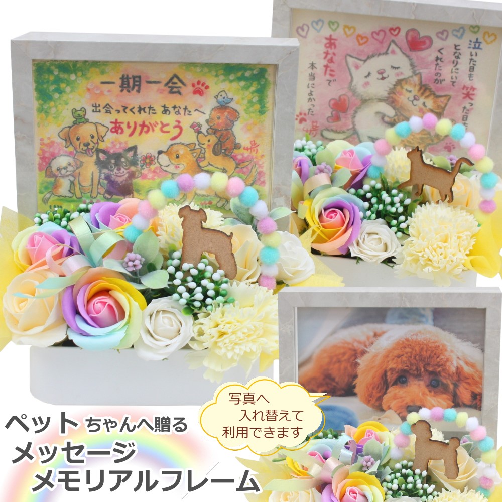 ソープフラワー ペット用 メッセージ フォトフレーム レインボーローズ 虹の橋 お悔やみ花 お供え アレンジメント ギフト