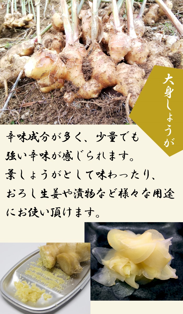 ※種生姜は、掘り上げてから時間の経過に伴い皮色の赤味が褪めている場合がございますが、品質には問題ございません。