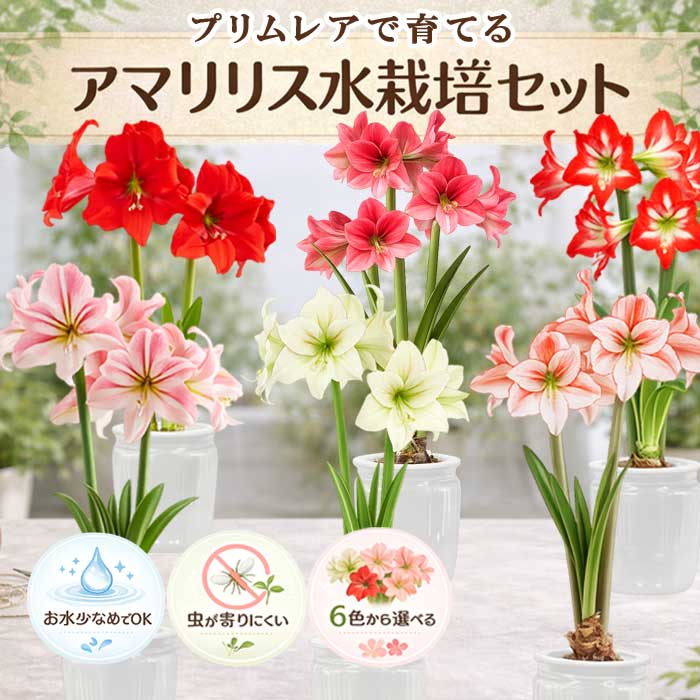 プリムレア で育てる アマリリス 水栽培 キット 【 球根 1球+プリムレア+専用ポット】 土なし 水蒸気栽培 花の大和