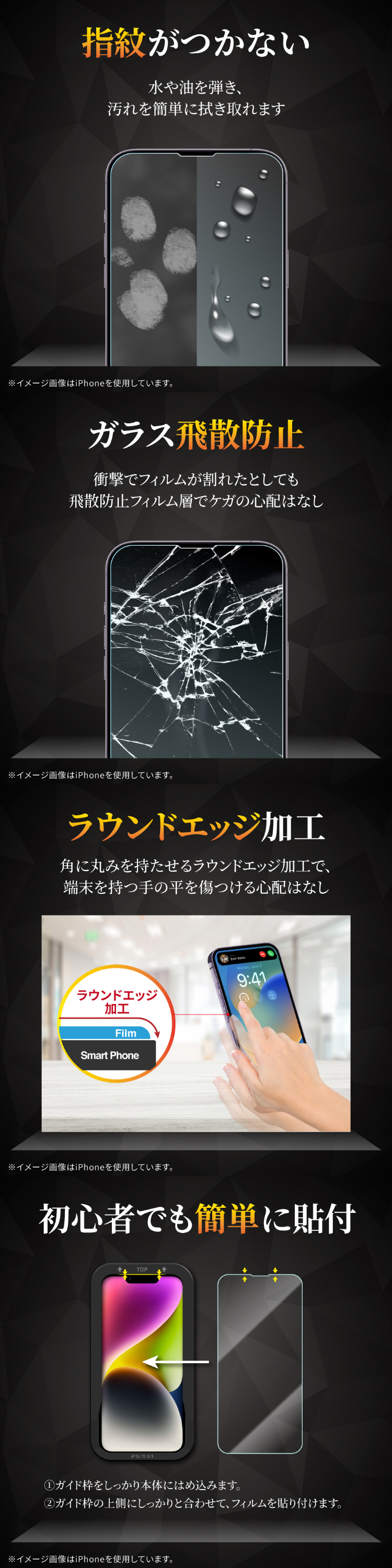 ※本製品は強い衝撃から画面を保護することはできません。衝撃によるスマホ本体の破損、故障などには一切保証いたしかねます。