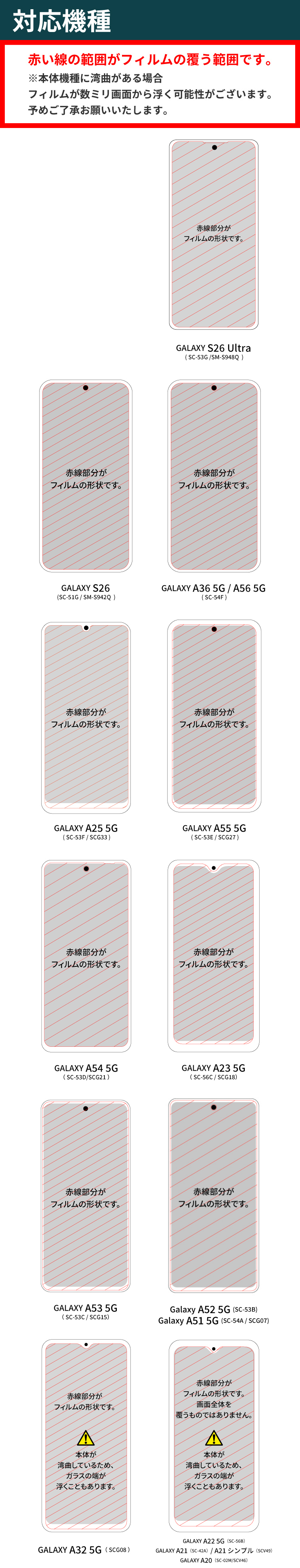 ※本体機種に湾曲がある場合、フィルムが数ミリ画面から浮く場合がございます。予めご了承お願いいたします。