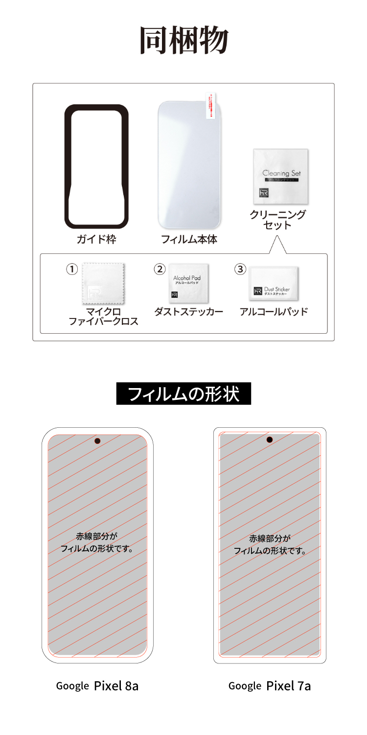 ※一部の機種(フチがラウンドしているモデル)は全体を覆うと端に空気が入るため、液晶画面よりも小さめに作られております。