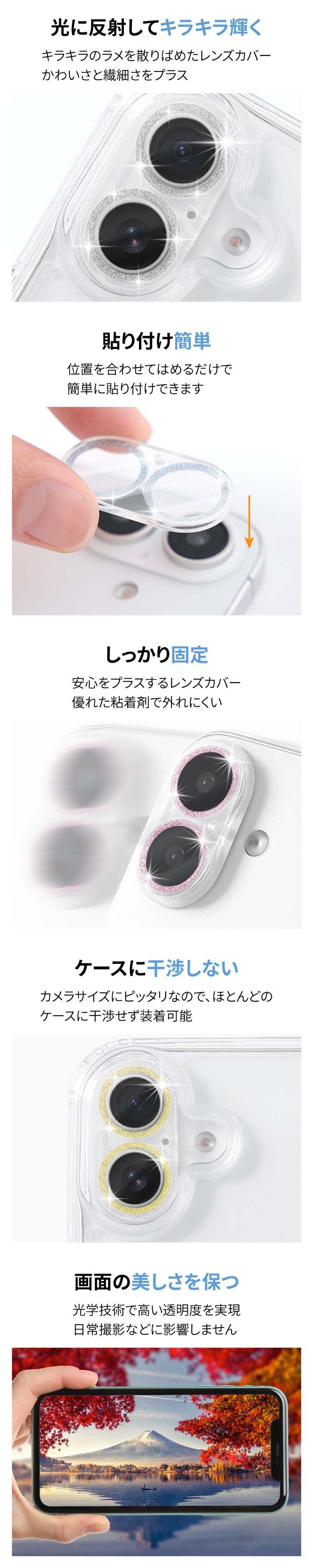 iPhone17 フィルム カメラレンズ キラキラ カメラ保護 グリッター iPhone16 iPhone16Pro iPhone17Pro iPhone Air iPhone17ProMax iPhone15 レンズカバー