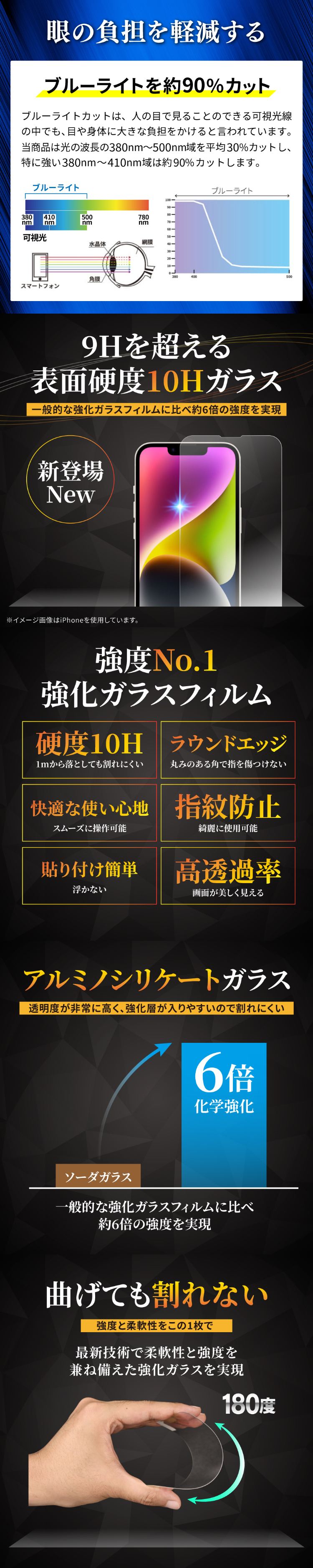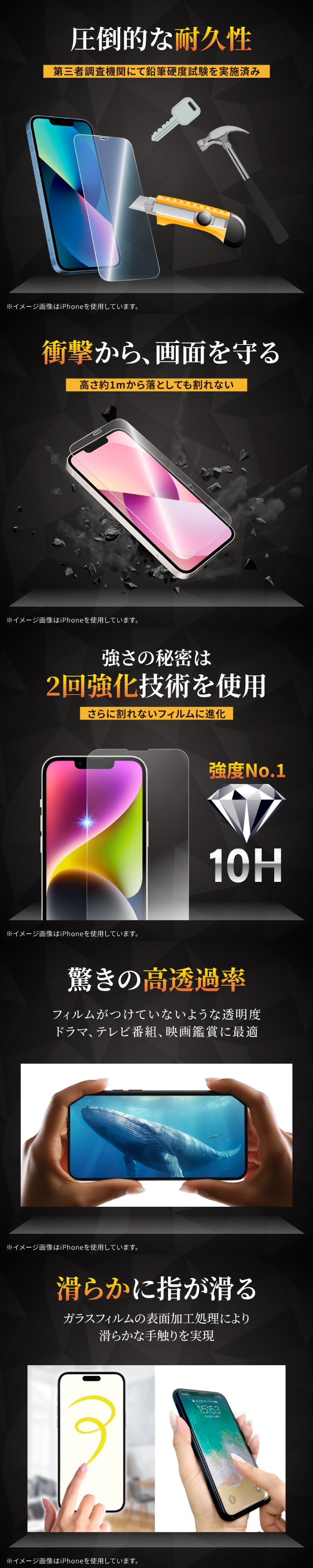 ※本製品は強い衝撃から画面を保護することはできません。衝撃によるスマホ本体の破損、故障などには一切保証いたしかねます。