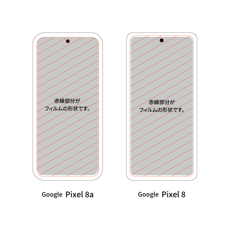 ※一部の機種(フチがラウンドしているモデル)は全体を覆うと端に空気が入るため、液晶画面よりも小さめに作られております。