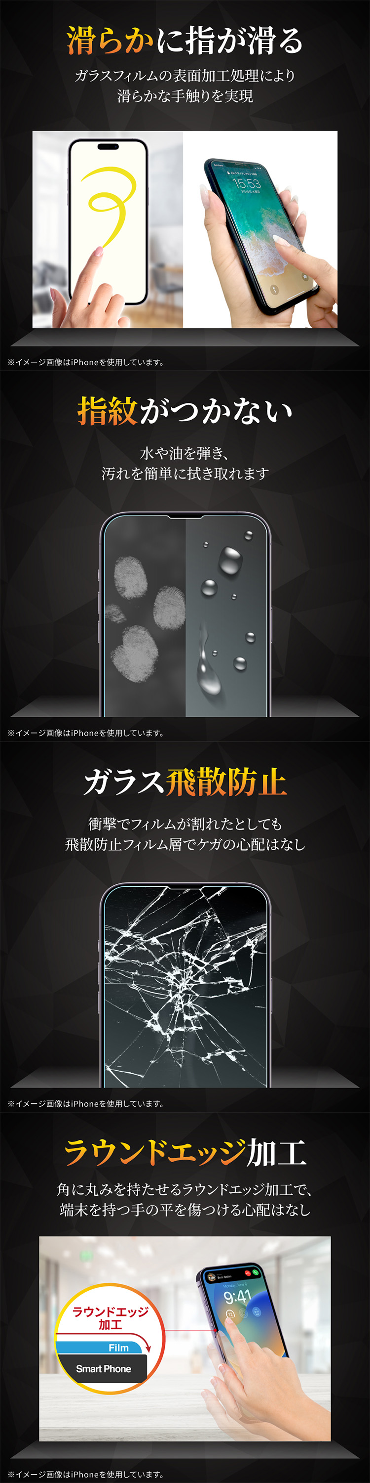 ※本製品は強い衝撃から画面を保護することはできません。衝撃によるスマホ本体の破損、故障などには一切保証いたしかねます。