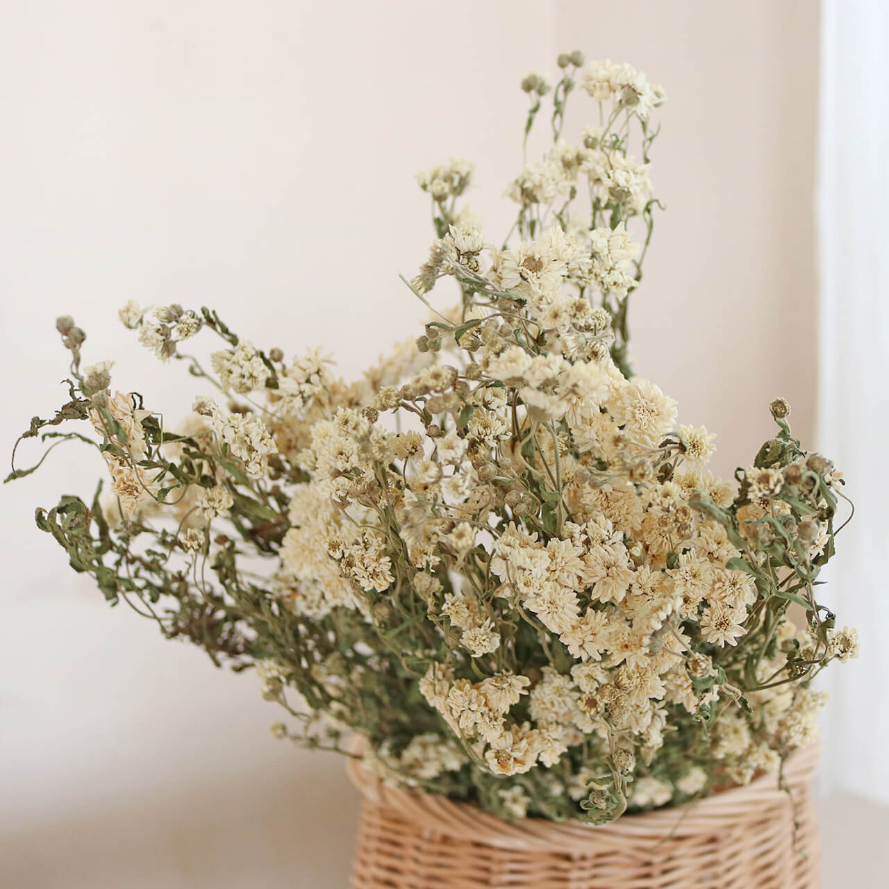 少しくすみのある優しいキナリ色はドライフラワーならではのアンティークな趣を感じます。