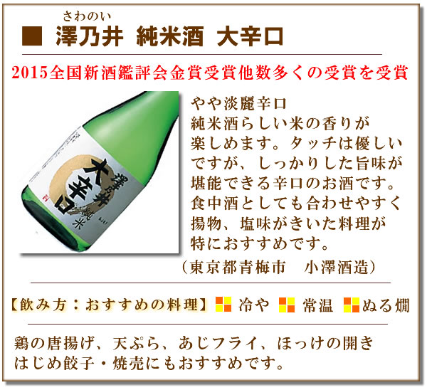 ●澤乃井 純米酒 大辛口(東京都青梅市)