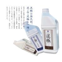 (1)“泥一刀両断”40gを45〜60℃熱めのお湯5Lに溶かし、“泥極”20gを追加で加えて、浸け置きをします。。