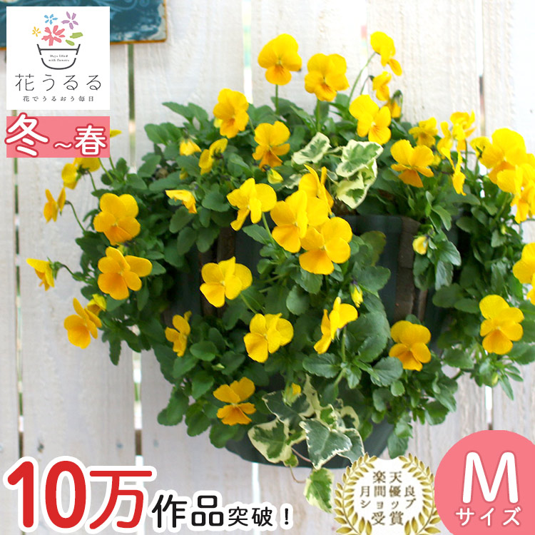商品名:ビオラのハンギングバスケット寄せ植え*オールイエロー* 玄関先・ベランダ・お庭を花園に。おうちで気軽にガーデニング*