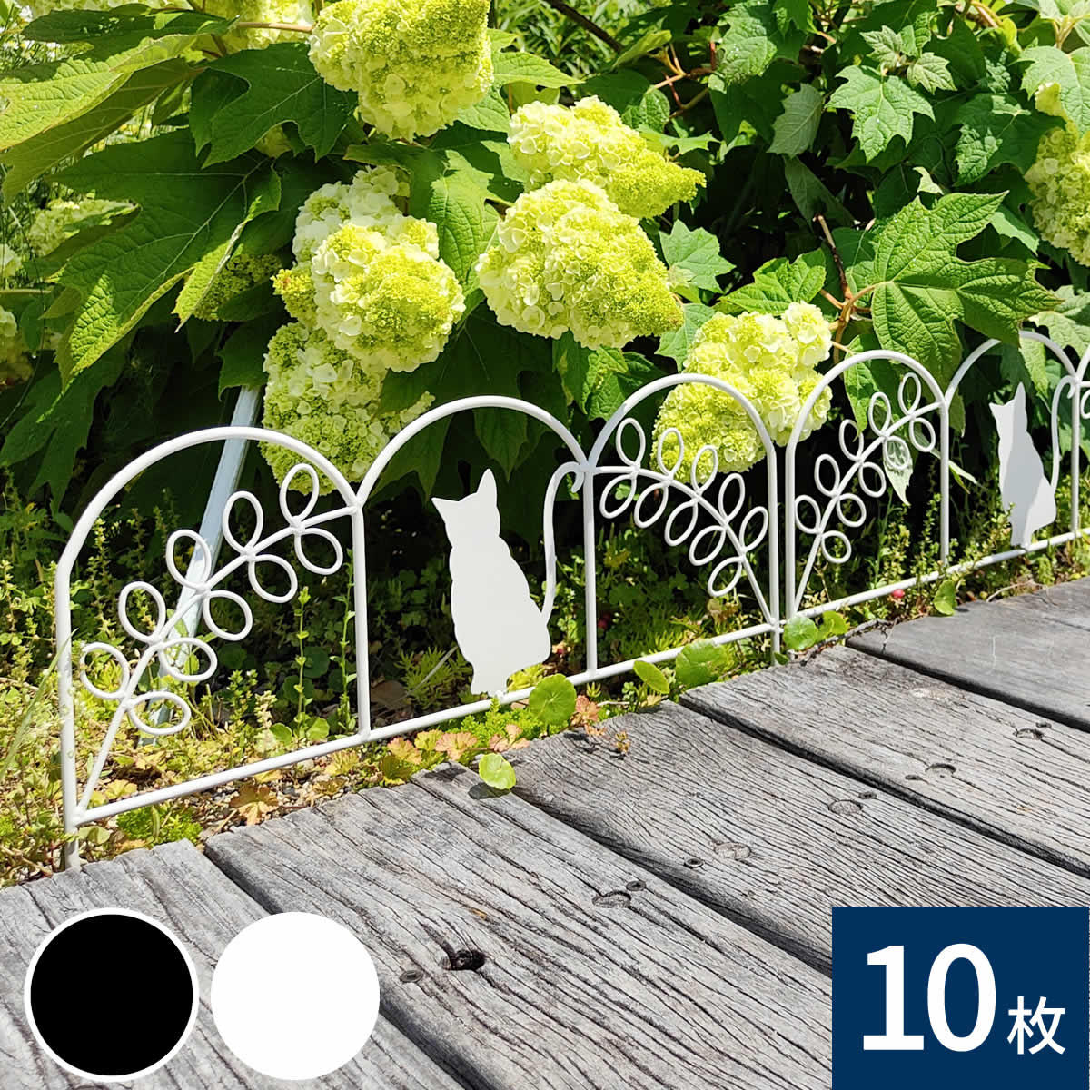 アイアンフェンス ミニ(猫) 10枚組 ブラック/ホワイト NK7238-10P 挿すだけ ミニフェンス ネコ ねこ パーテーション 柵 花壇 庭 【住まいスタイル直送品】