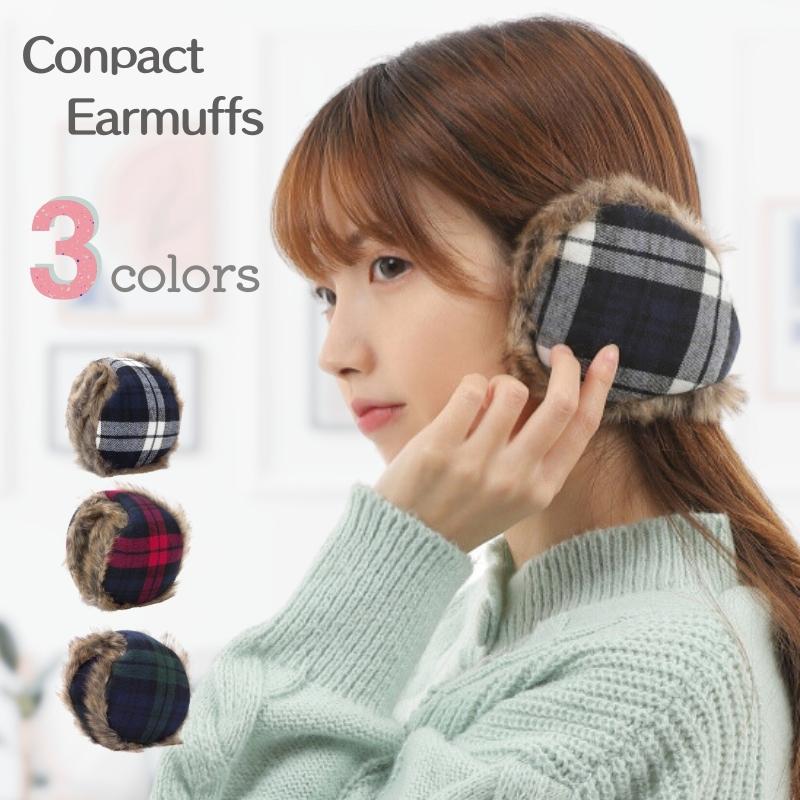 Aness(アネス) チェックが可愛い コンパクト イヤーマフラー イヤーマフ 耳あて ファー イヤマフ 自転車 レディース 学生 男女兼用 p811