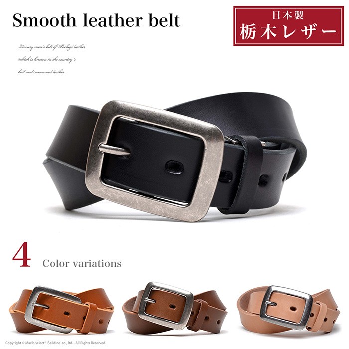 Marib select 栃木レザー ベルト レザーベルト 本革 スムース 長さ調整可能 メンズ 35mm 110cm (4カラー) b874