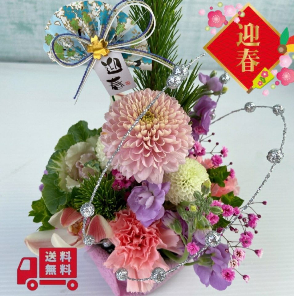 迎春アレンジ 正月飾り お正月の花 お年賀 迎春 花 ギフト しめ縄 送料無料 フラワー アレンジメント ギフト スタイリッシュ 正月 送別 お正月 正月飾り