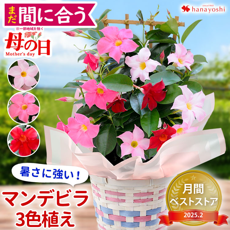 母の日 プレゼント 花 鉢植え 母の日ギフト 2025 毎年 咲く マンデビラ 3色の花が咲く トレリス付き 花鉢 鉢花 多年草 珍しい