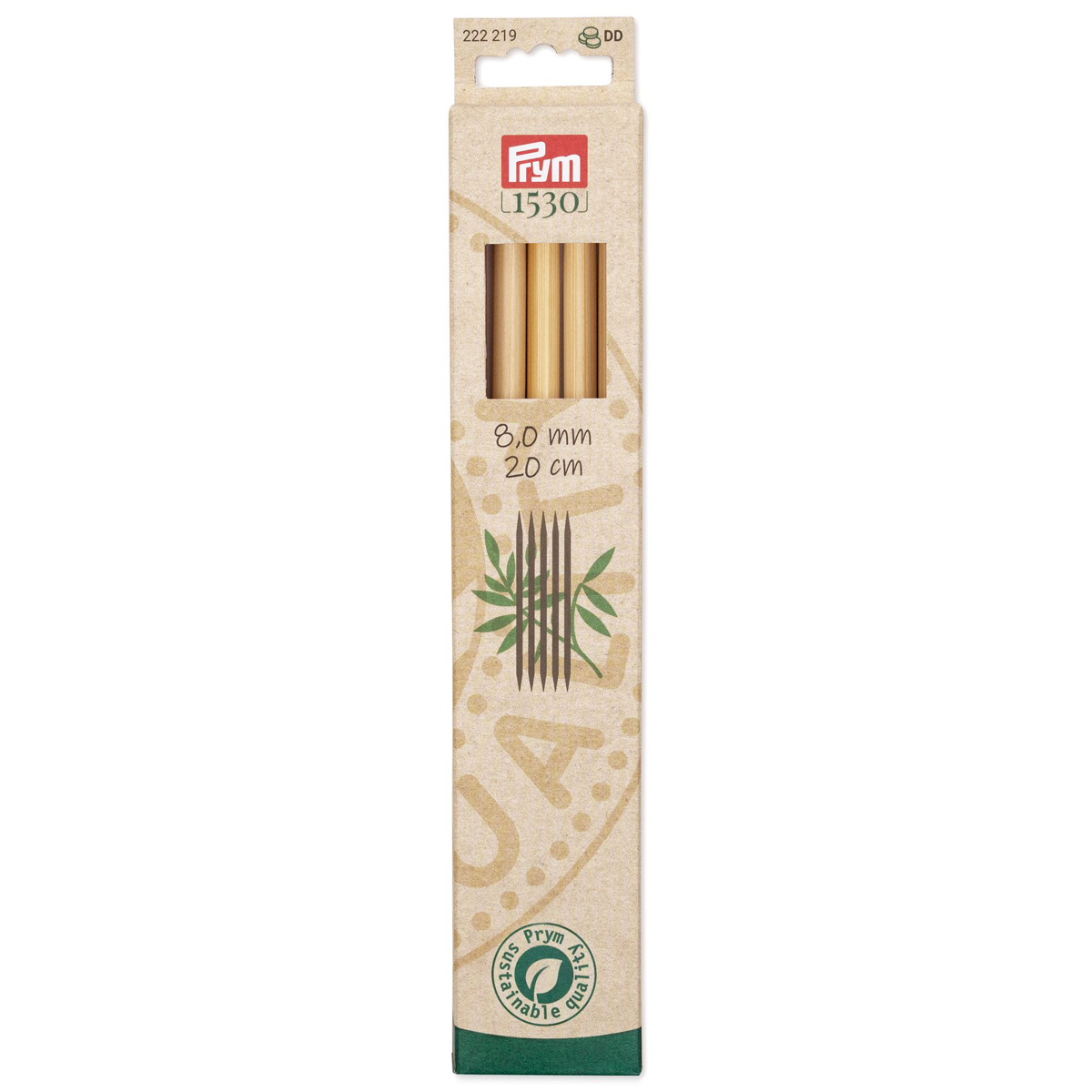《Prym》プリム・1530 あみ針 バンブー・ダブルポイント・5本入 8ミリ(8.00mm)/全長:20cm 222219