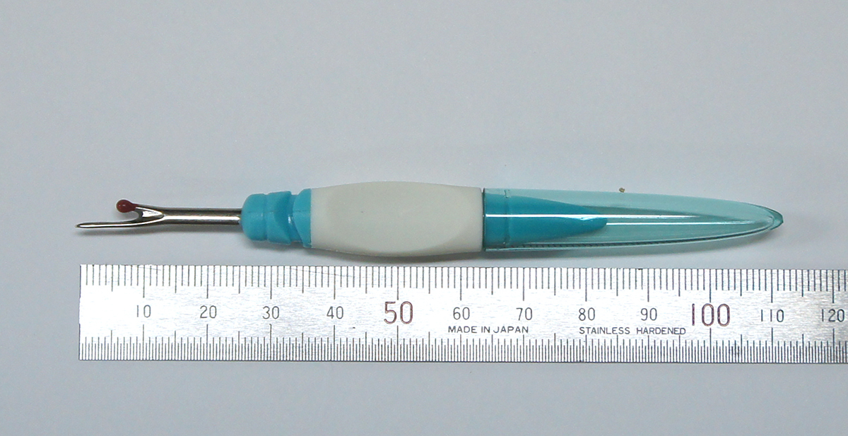 プリム社製のリッパー。斬新なデザインで程よい太さで持ちやすく、長時間の作業にも疲れにくいです。縫い目をほどき切る時に、ボタンの糸を切る時に大変便利です。