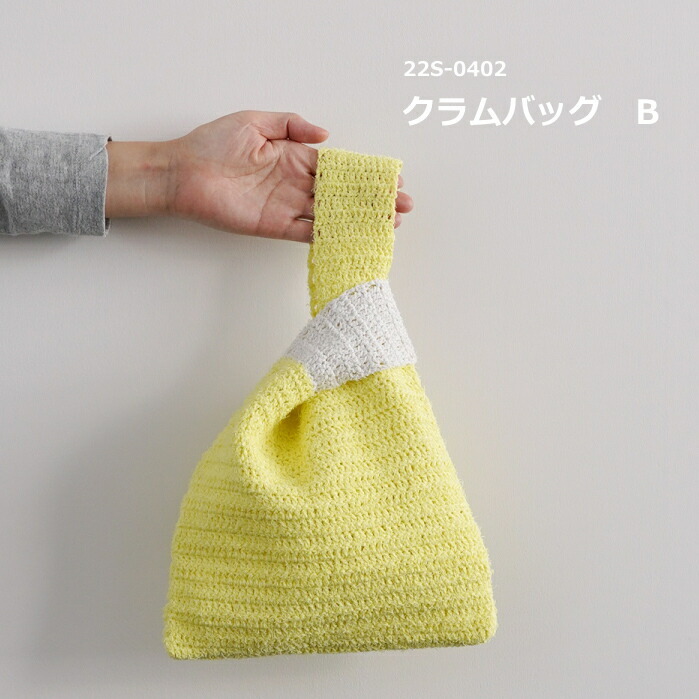 編み図付き(22S-0402) クラムバッグ B キット カーリーコットン 手編みキット バッグ 編み物 手作りキット ダルマ毛糸