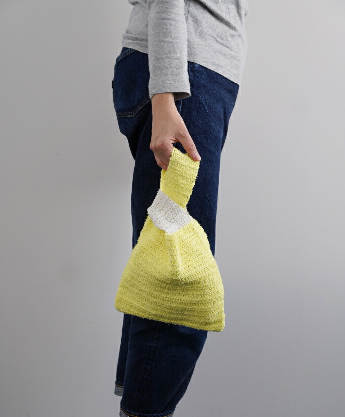 キュッと巾着風に持てるデザインで、ちょこっとお出かけするのにちょうど良いサイズ。