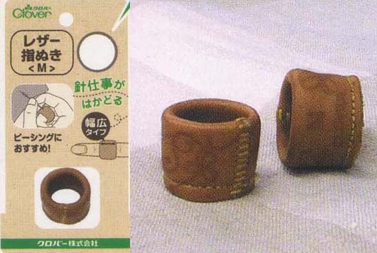 クロバーレザー指ぬきS・M・L。幅広で指になじむ皮製指ぬきです。作業がはかどる幅広タイプ!