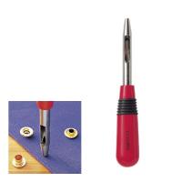 ボタンホールの端にある穴をあけ、ハトメやベルトの穴あけに使います。