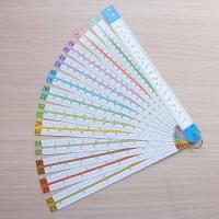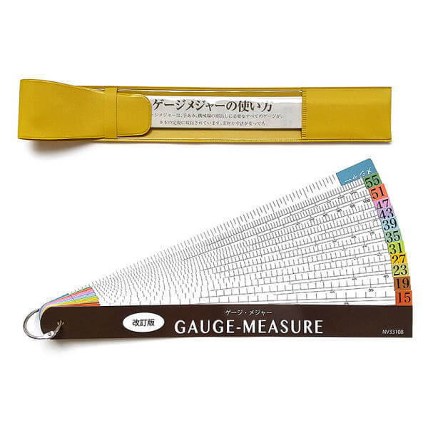 手編み、機械編みの割り出しに必要な、12から57までのすべてのゲージが12本の定規に収録されています。