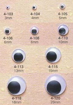 ぬいぐるみ(あみぐるみ)手芸をするには「眼」がいりますね。ここには、トーホーの動く目玉「動眼」を揃えてみました。このタイプは後ろが平らな接着型ですが、低単価なので5袋単位での販売です。