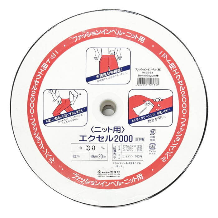 エクセル2000 ニット用 インベル 黒 30mm×20m巻 NO.2533 商品詳細 |