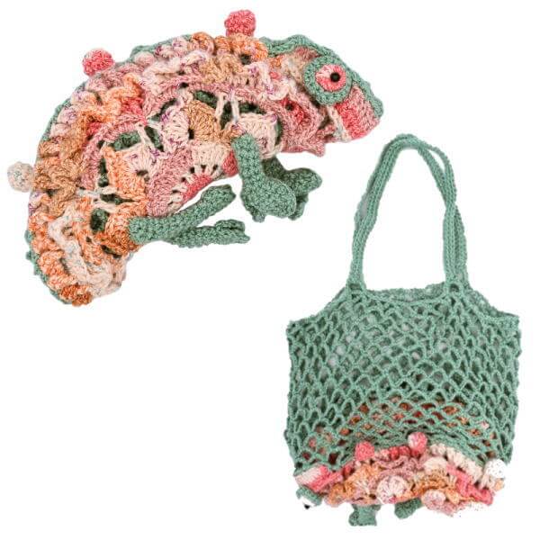 見た目はカメレオンのあみぐるみに見えますが・・・