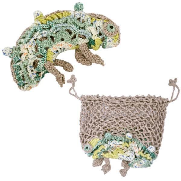 見た目はカメレオンのあみぐるみに見えますが・・・