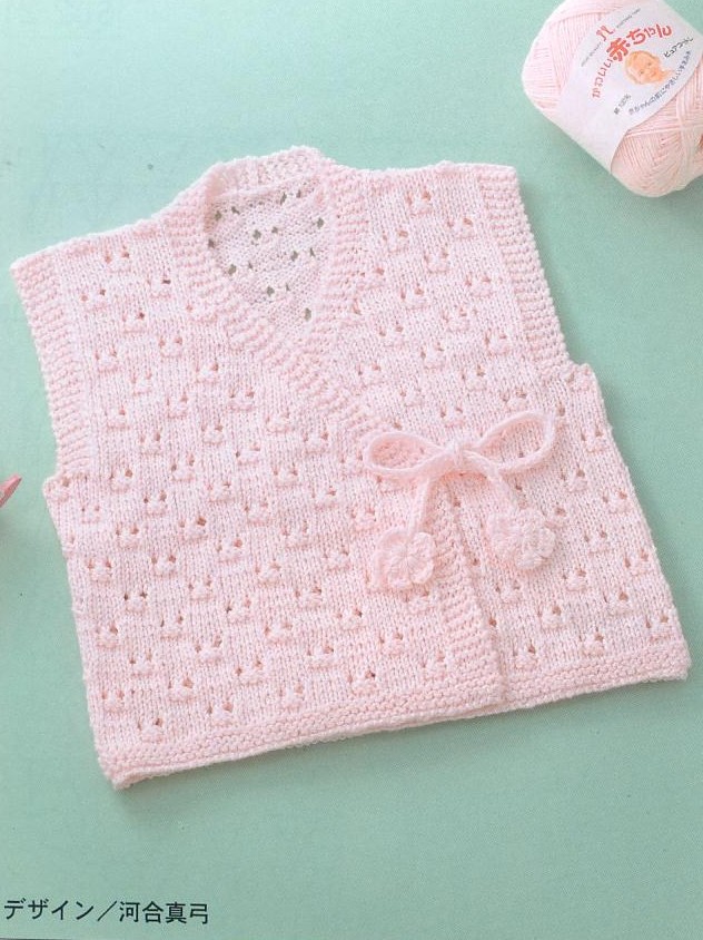 ハマナカ手あみ糸かわいい赤ちゃんピュアコットン3玉で編む透かし模様のキュートな胴着です