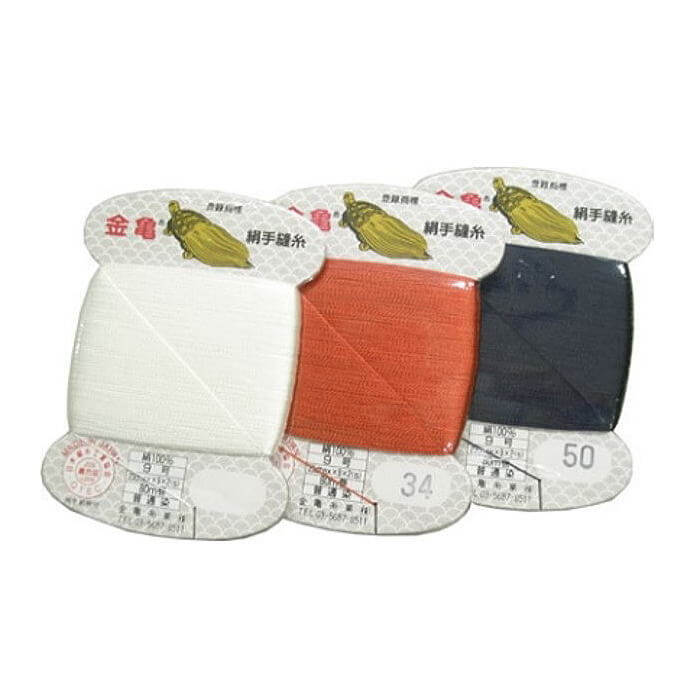 着物の仕立て、和裁には昔から定評のある金亀印手縫い糸絹糸は糸はじきができる張撚り状製品です。