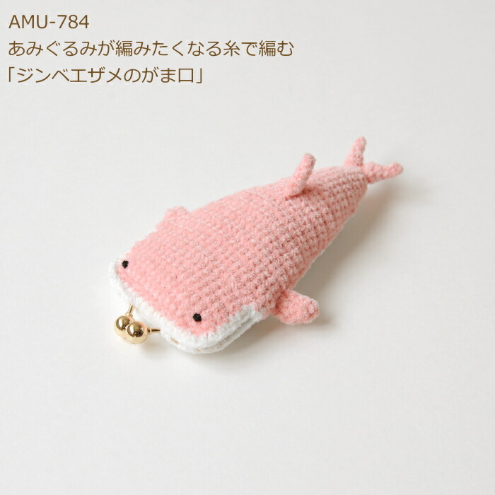 編み図付きキット ジンベエザメさんのがま口 AMU-784C 手芸キット あみぐるみが編みたくなる糸 編みつける口金 ハマナカ 編み物キット KOU