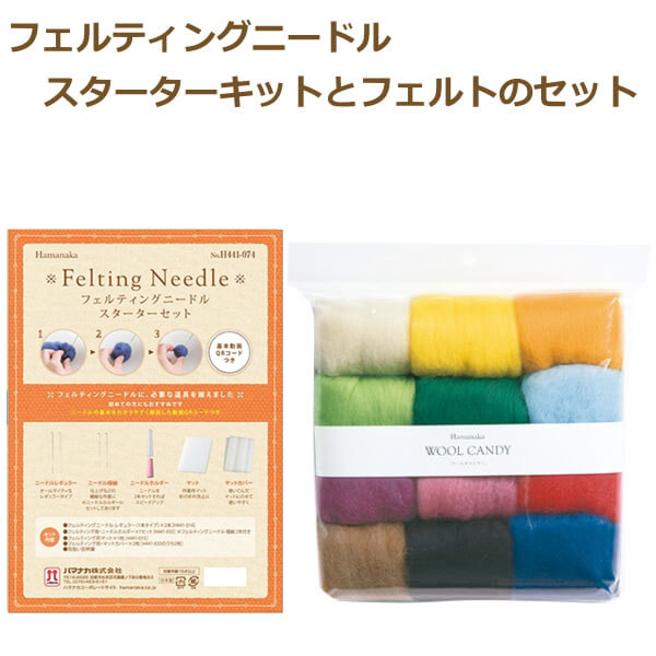 羊毛フェルト キット 初心者 羊毛フェルト スターターキット 羊毛フェルト 針 羊毛フェルト ニードル H441-047フェルティングニードルスターターセットとウールキャンディ 12色セット