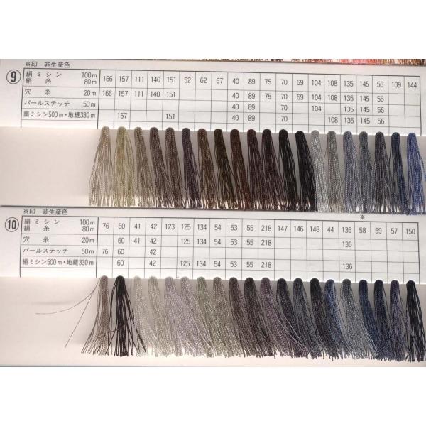 本格的な和裁の仕立てに人気の昔ながらの金亀印絹糸(手縫い糸、ミシン糸)の見本帳です。