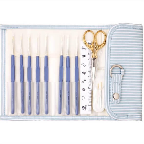 ◇tulip「チューリップ印」の指がラク〜な「ETIMO・エティモ」レース針セットTLG-001 プレミアムゴールド(ゴールドハンドルのはさみタイプ)。 ETIMOレース針のお得な8本セット。イタリア製高級手芸はさみと、持ち運びに便利なケース、とじ針、ものさし付き。クッショングリップが最高に持ちやすい! 使いやすくて、疲れにくいと大好評です!はさみの切れ味はゴールド>シルバーとなっております。 「特徴」 (1)なめらかなかぎ先:細かく研磨したかぎ先は糸がひっかからず、スムーズな編み心地です。 (2)持ちやすい形状:持ちやすく、回しやすく、すべらないという独自の形状を開発しました。 (3)クッショングリップ:指にやさしくフィットする特殊なラバー素材で、指にかかる負担を大幅に軽減しました。 【セットの内容】 レース針 0号 , 2号 , 4号 , 6号 , 8号 , 10号 , 12号 , 14号。イタリア製高級手芸はさみ、とじ針2本、ものさしがケース 手づくり商品は手芸の山久で 手芸の山久では納品明細をメールにてお送りしています。商品到着時にご確認下さい。