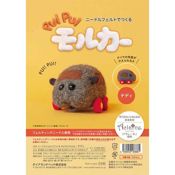 TV東京系「きんだーてれび」にて大好評放送中のパペットアニメ「PUI PUI モルカー」よりニードルフェルトでモルカーをつくる「手作りキット」追加キャラクター発売されます。