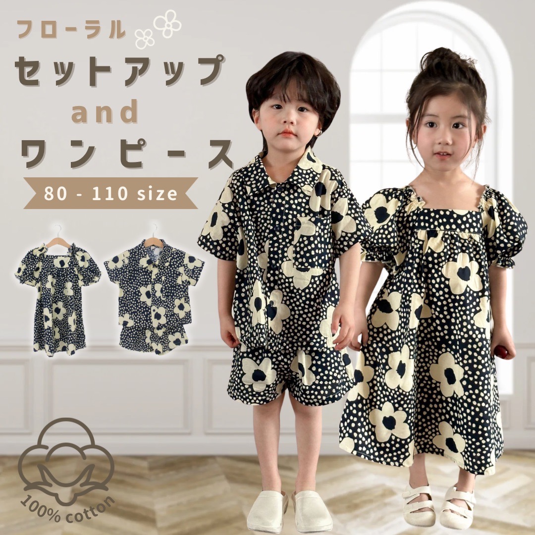 | 商品説明 | 大胆デザインのお揃いコーデ。写真撮影など特別なイベントにもぴったり♪ Point1.ユニークなデザイン 大きな花柄とドット模様の組み合わせがとても目を引きます。 大胆なデザインで、特別なイベントや写真撮影にぴったりです。 Point2.姉妹・兄弟お揃いコーディネート 男の子用のシャツとショートパンツ、女の子用のワンピースが揃っており、兄弟や友達でお揃いコーディネートが楽しめます。 Point3.快適な着心地 ゆったりとしたシルエットで、動きやすさと快適さを重視しています。 特に子供たちの活発な動きに対応できるデザインです。 Point4.コットン100%素材 半袖のシャツとワンピースは夏に最適で、涼しげな印象を与えます。 コットン100%素材のため、通気性が◎。 Point5.これ1着があればどんな着回しも可能 シンプルながらも華やかなデザインは、帽子やシューズなどのアクセサリーとも合わせやすいです。 |