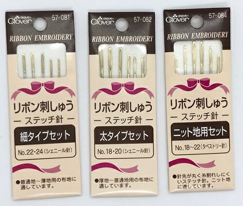 ステッチ針 リボン刺繍用 クロバー clover 3タイプ 細タイプ・太タイプ・ニット地用 シェニール針