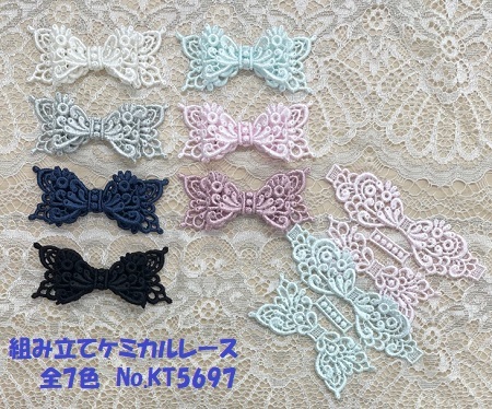ケミカルレース モチーフ 組み立て リボン アップリケ レースモチーフ 全7色 No.KT5697