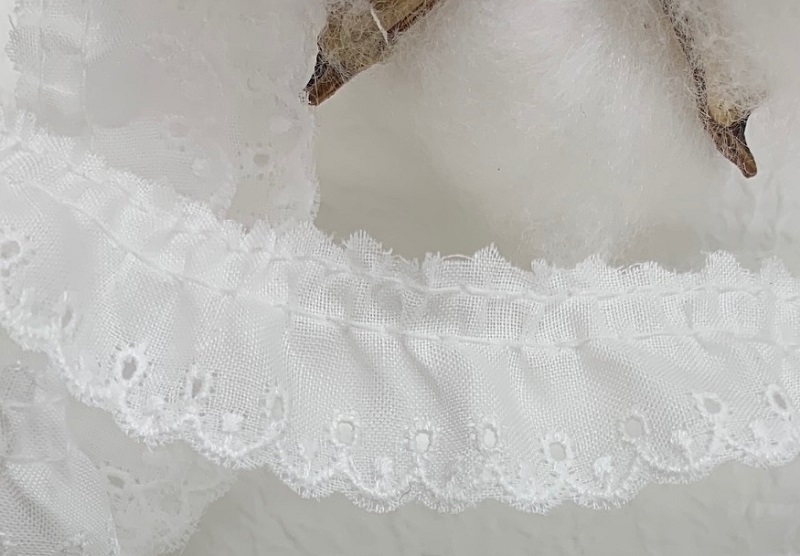 ※レース・刺しゅう糸の素材は綿、フリルを寄せている糸の素材は
