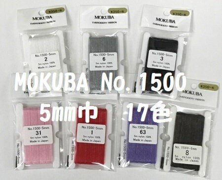 刺繍リボン MOKUBA エンブロイダリーリボン 木馬 オーガンジー 5mm巾×5m No.MER1500-5a 17色/全32色 ピンク系・赤系・紫系・茶系・グレー系・白・黒