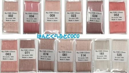 刺繍リボン MOKUBA エンブロイダリーリボン 木馬 3.5mm巾×5m うすピンク系 13色/全100色 No.MER1540-35a