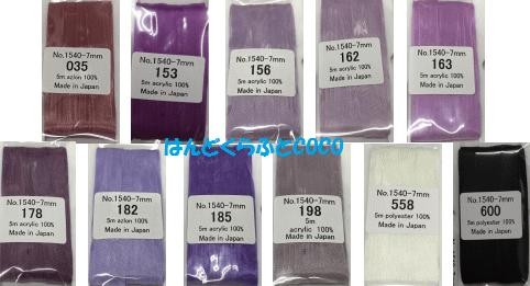 刺繍リボン MOKUBA エンブロイダリーリボン 木馬 7mm巾×5m むらさき系・オフ白・黒 11色/全51色 No.MER1540-7c