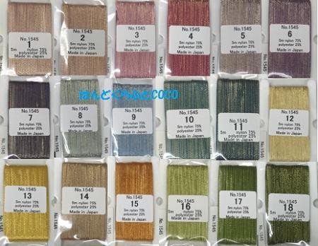 No.1545のラメリボンはメーカーである木馬の在庫限りで廃番予定となります。