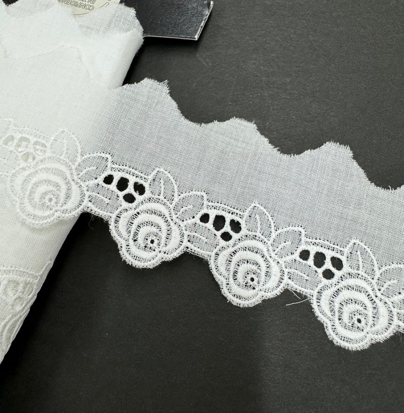 綿レース バラ柄 日本製 約40mm巾 ホワイト No.SP-92075 コットンレース 【在庫限り】