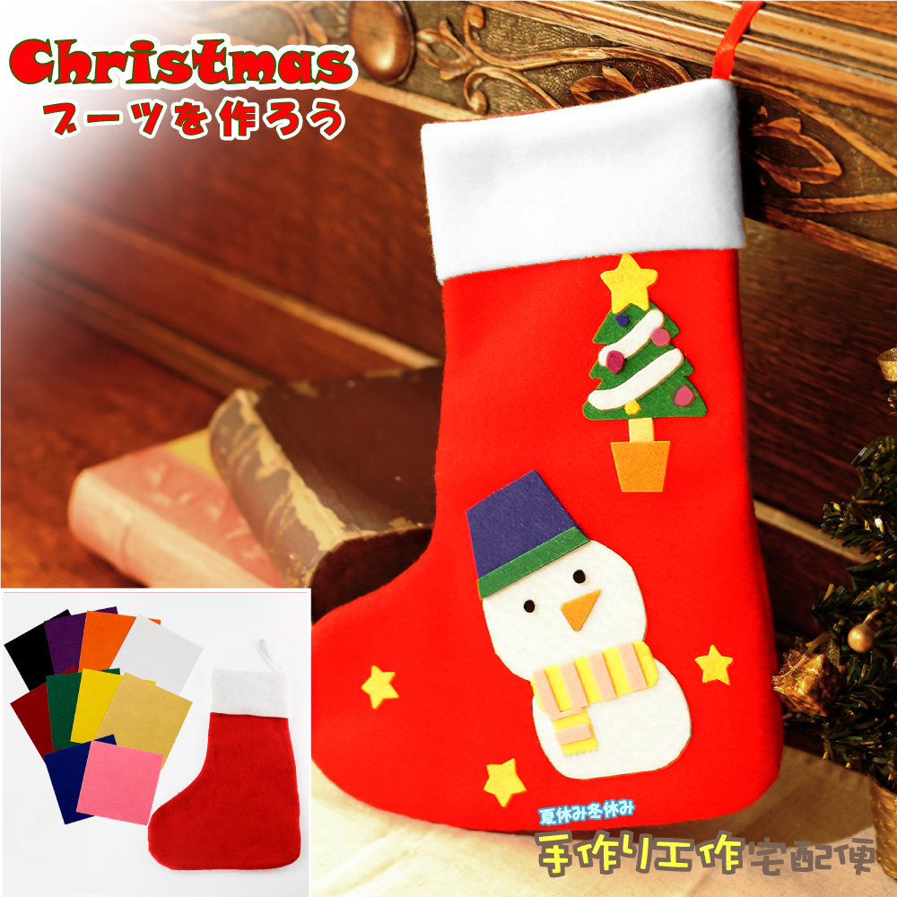 【フェルトのくつした 赤 フェルトシール付き】フェルトで作られた靴下に飾りを付けてクリスマスに用意する靴下を作ろう♪