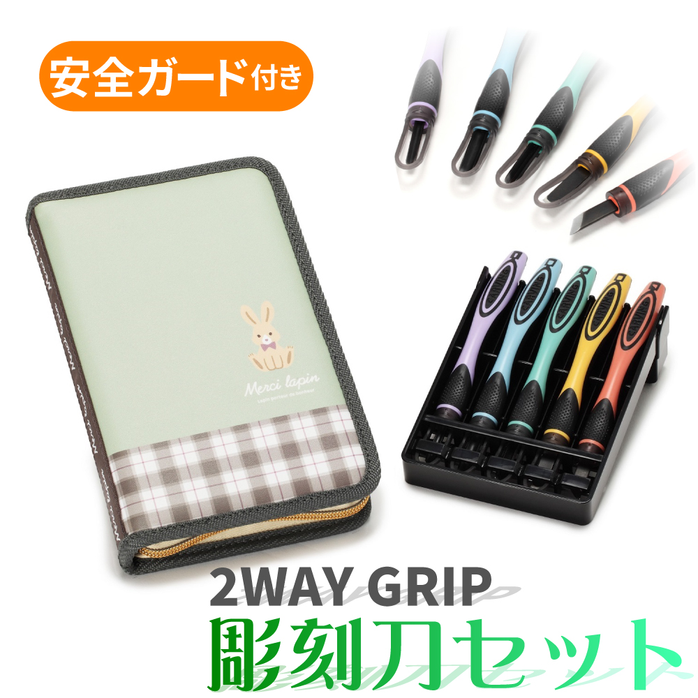 オシャレなくすみグリーンの合皮にうさぎのワンポイントが可愛い彫刻刀セット