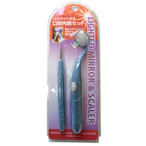 取り除くのに効果的。ボタン電池内蔵で、スイッチを押すと、口の中が照らされて鏡に映ります。